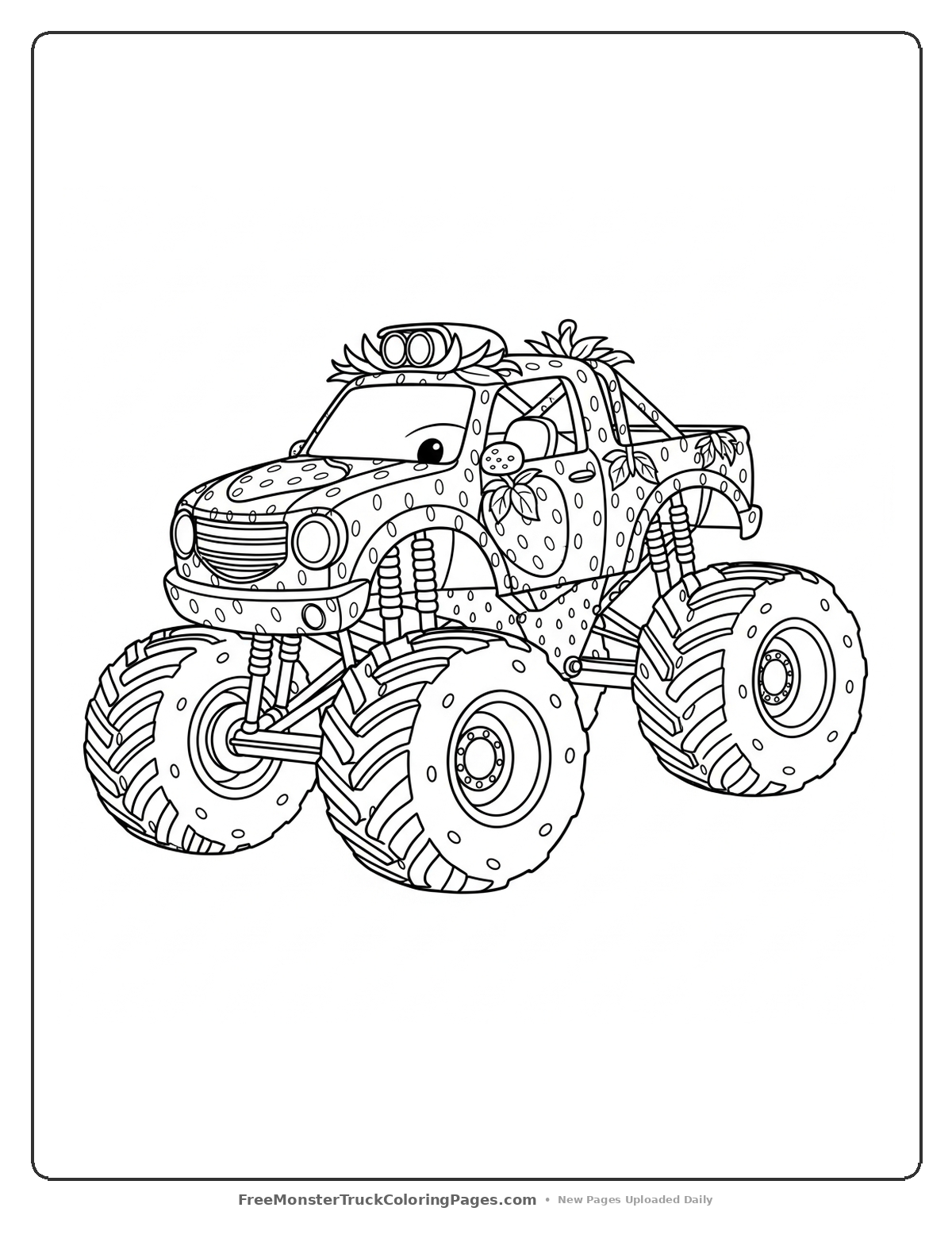 This sweet monster truck is covered in juicy strawberries and has berry-themed decorations all over its body. Kids will love coloring the red strawberries and green leaves while learning about healthy fruits!