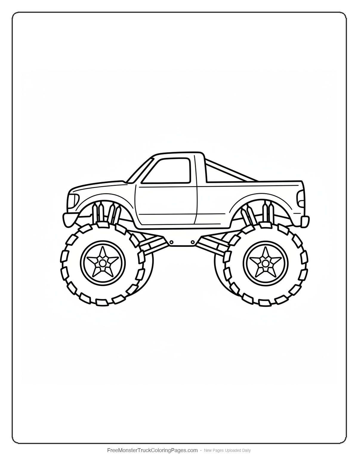 Free printable ninja monster truck coloring pages for kids ages 2-8. Shuriken wheels, katana exhausts, kunai bumpers, ninja mask grilles — every truck is built with ninja weapons and stealth features. Bold outlines, ready to print!