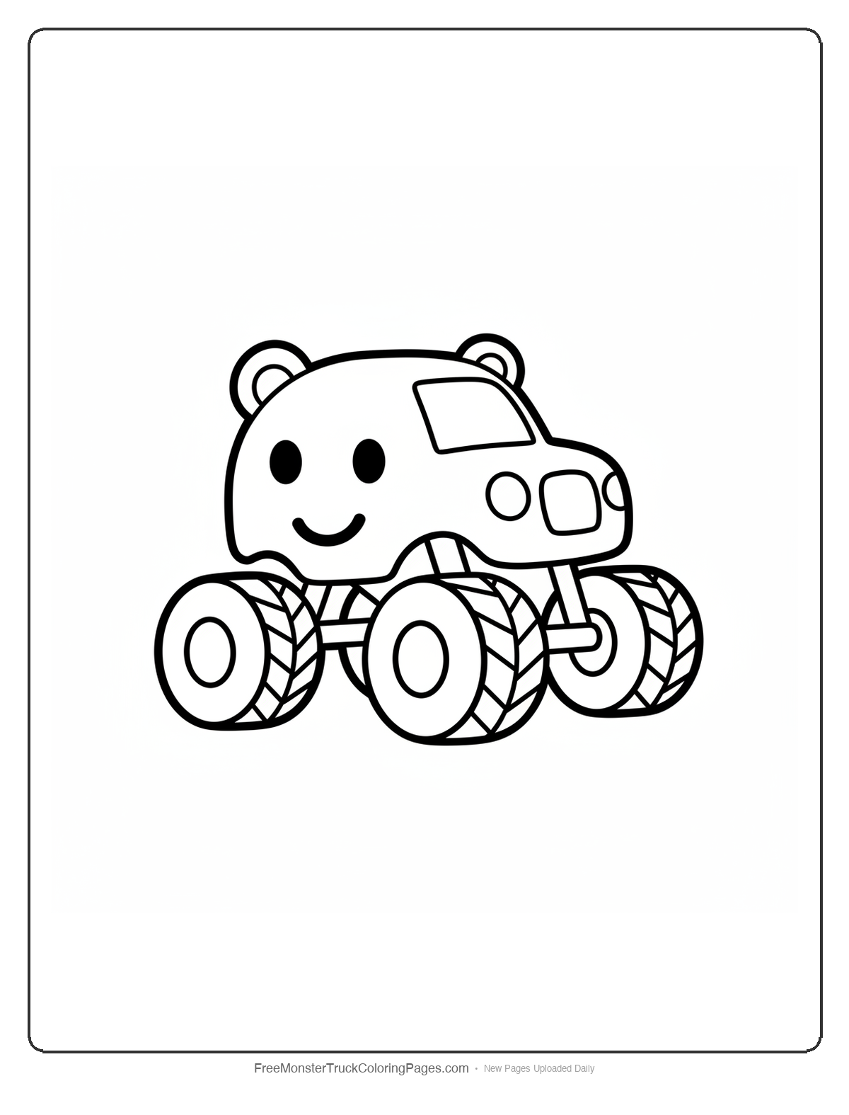 This monster truck looks just like a giant toy box on wheels! Simple and fun for little hands to color, with big shapes and easy lines.