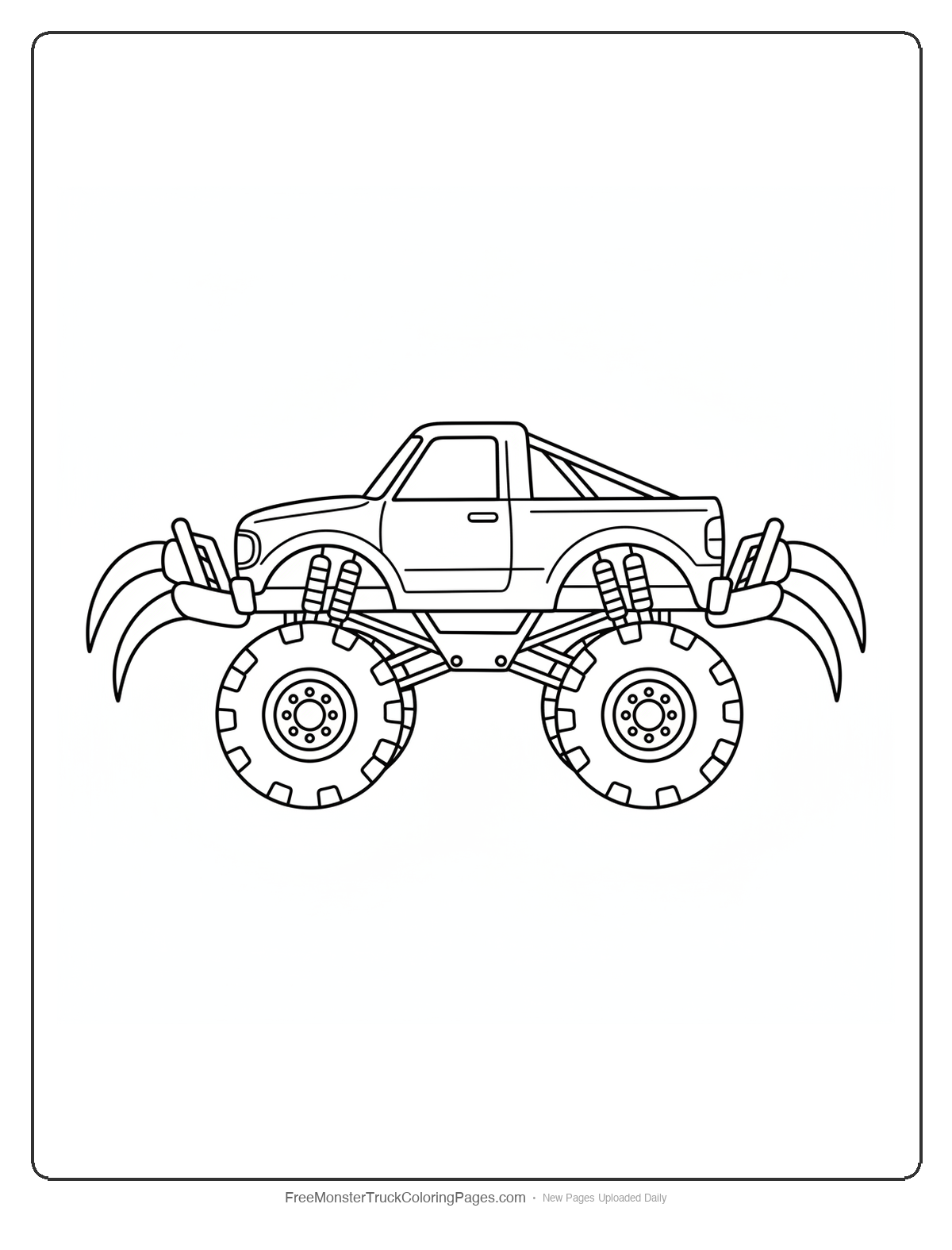 Free printable wolverine animal monster truck coloring pages for kids ages 2-8. Claw bumpers, snarling hoods, burrowing plows, snapping jaw grilles — every truck is built with wolverine animal features. Bold outlines, ready to print!